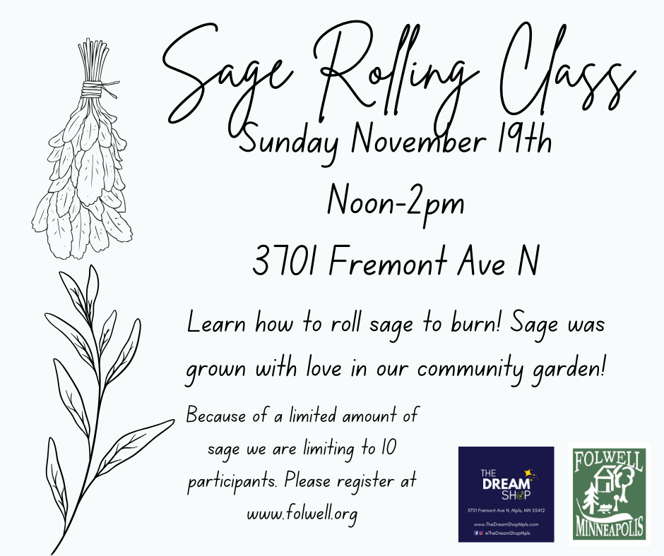 Sage Rolling Class Community GardensYouth Nov 14 Written By Chair FNA Register Here- SAGE CLASS REGISTRATION Harvest FestivalPenn Ave GardenPumpkin giveawayCommunity Gardens Chair FNA